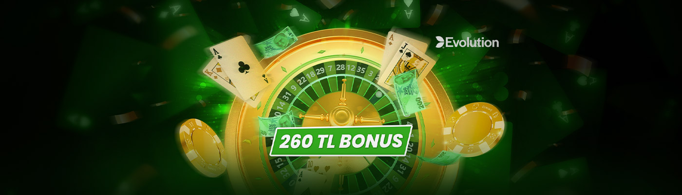 - Evolution canlı oyunlarında geçerli ve sadece bir kat çevrimli 260 TL Bonus hesabına gelsin!