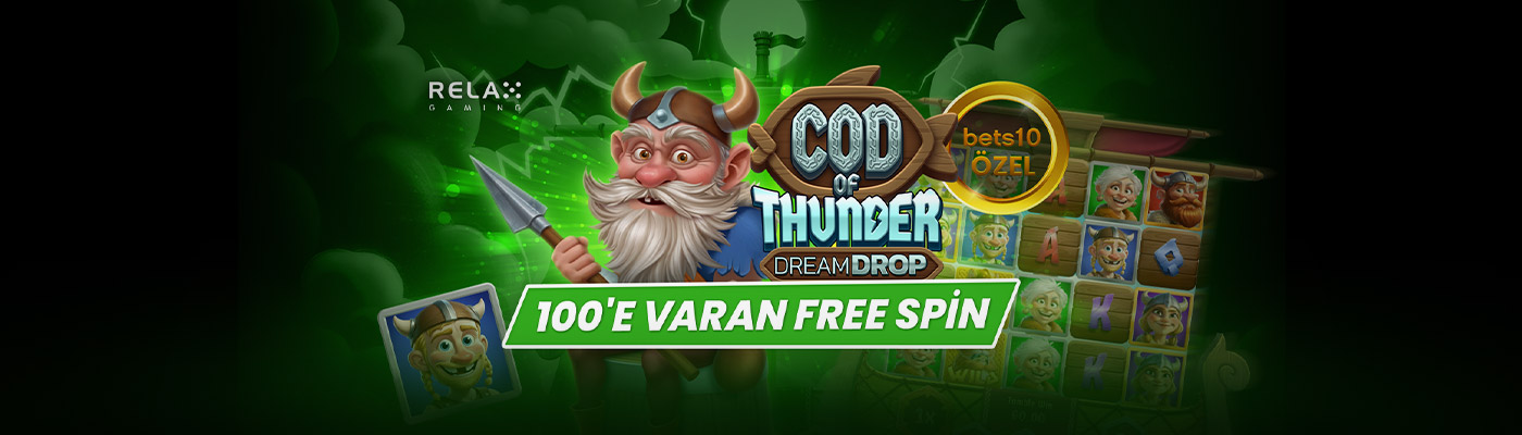 - Cod of Thunder Dream Drop’ta geçerli 20 Free Spin kazan.